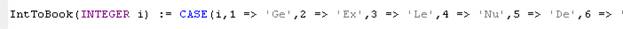 IntToBook(INTEGER i) := CASE(i,1 => 'Ge',2 => 'Ex',3 => 'Le',4 => 'Nu',5 => 'De',6 => 'Jos',