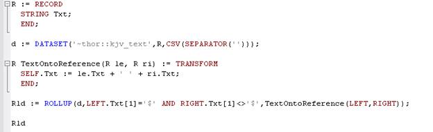 Rld := ROLLUP(d,LEFT.Txt[1]='$' AND RIGHT.Txt[1]<>'$',TextOntoReference(LEFT,RIGHT));